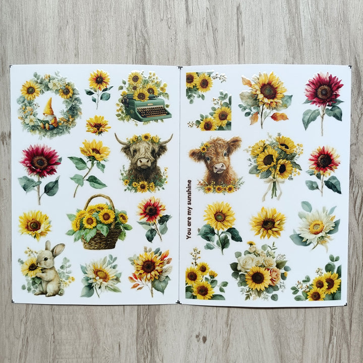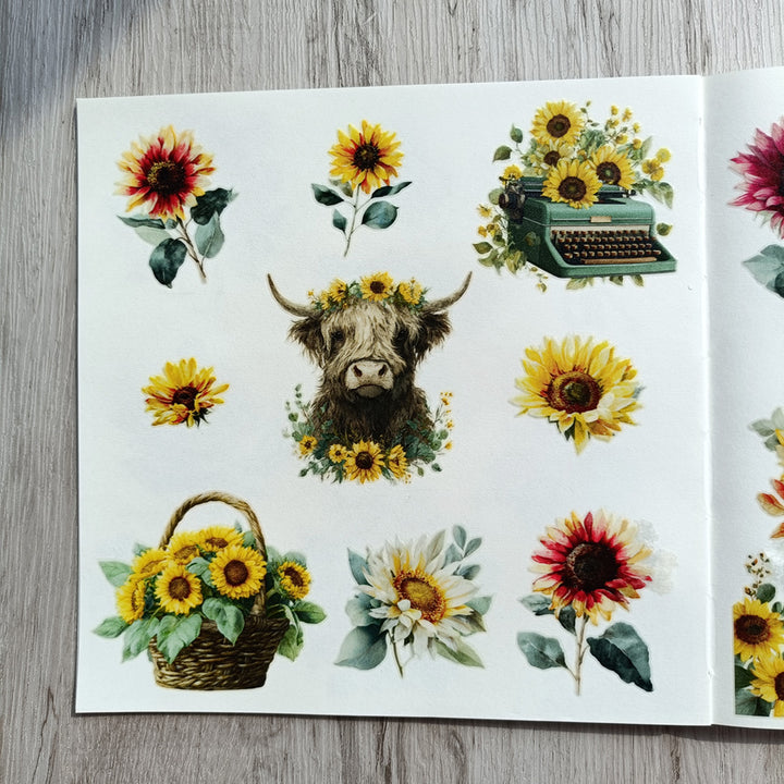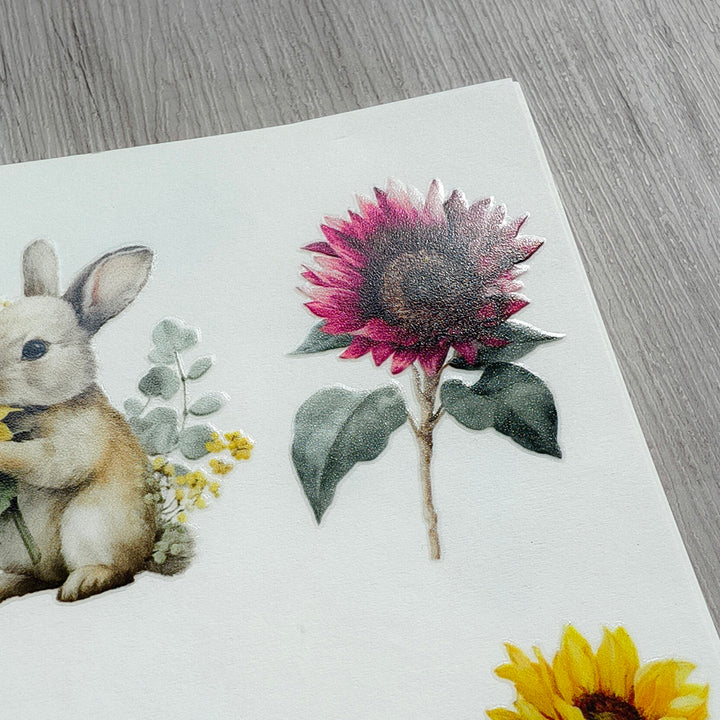 Bring the warmth of the countryside to your crafts with these Sunflower Farm Matte Transfer Stickers — featuring golden sunflowers, the beloved Highland cow, gentle bunnies, and cozy farmhouse details.